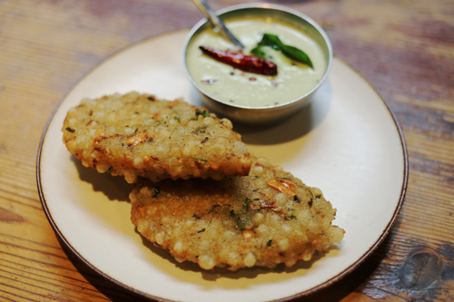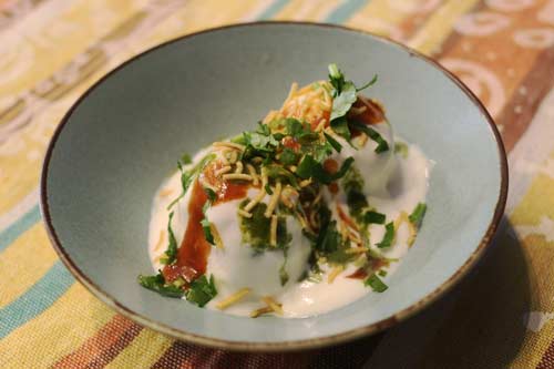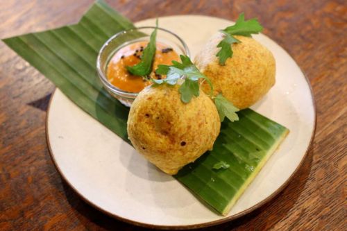揚げドーナツをヨーグルトに浸した南インドのスナック